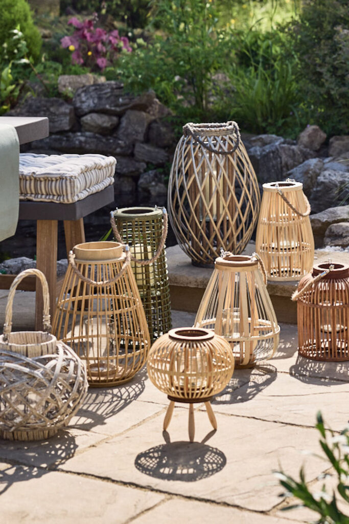 Mixed-material lanterns (rattan + glass)