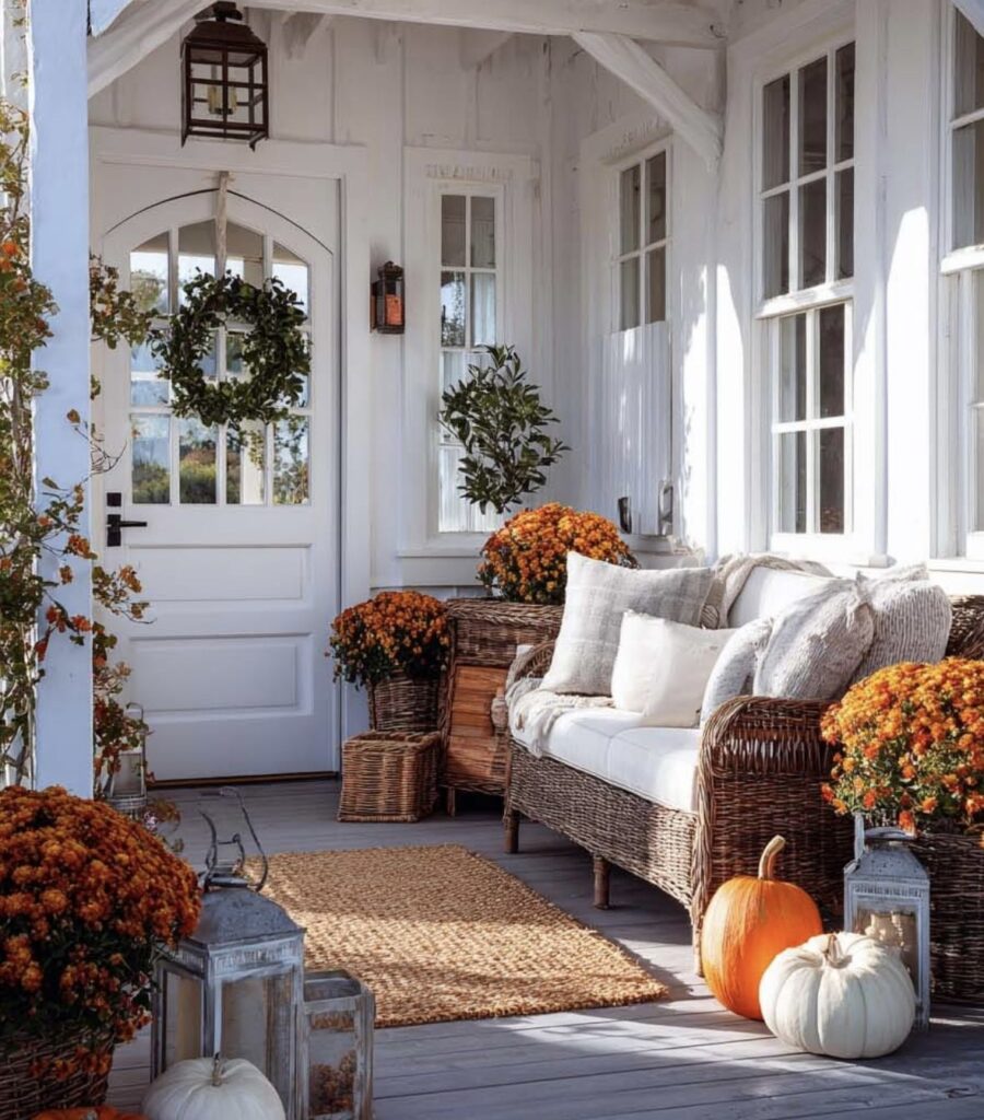 Elegant lanterns adding warmth to fall porch décor