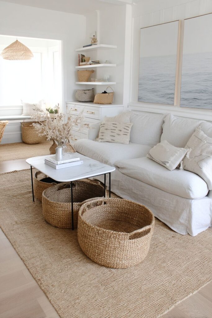 Japandi style is loved for its simplicity and the functional beauty of its baskets