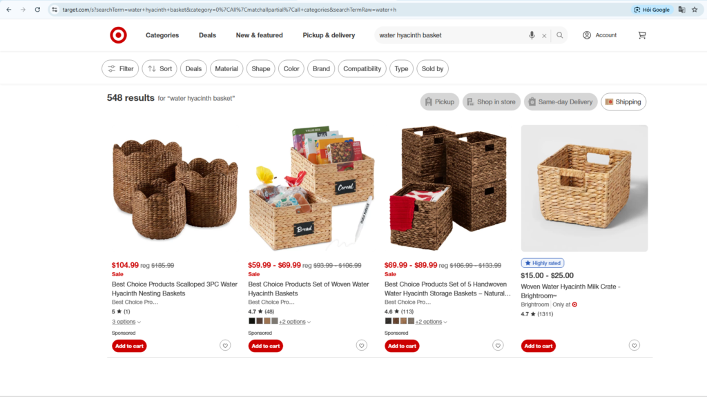 There are more than 548 search results for “water hyacinth basket” on Target online store (Source: FEH Team)