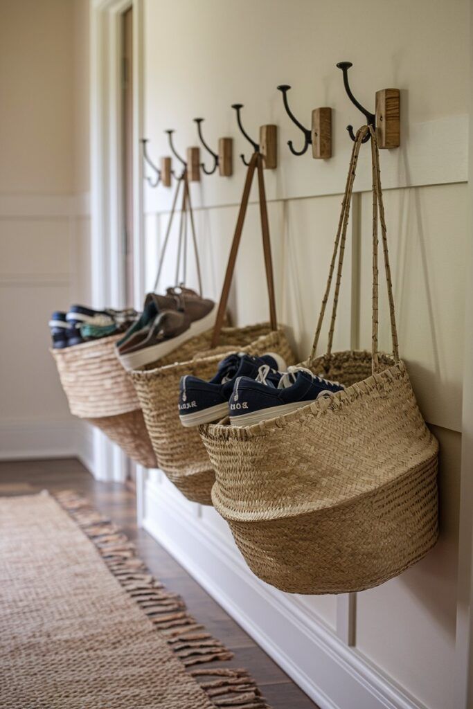 Tall baskets for shoes, umbrellas, and quick-drop items—very popular with US suburban households.